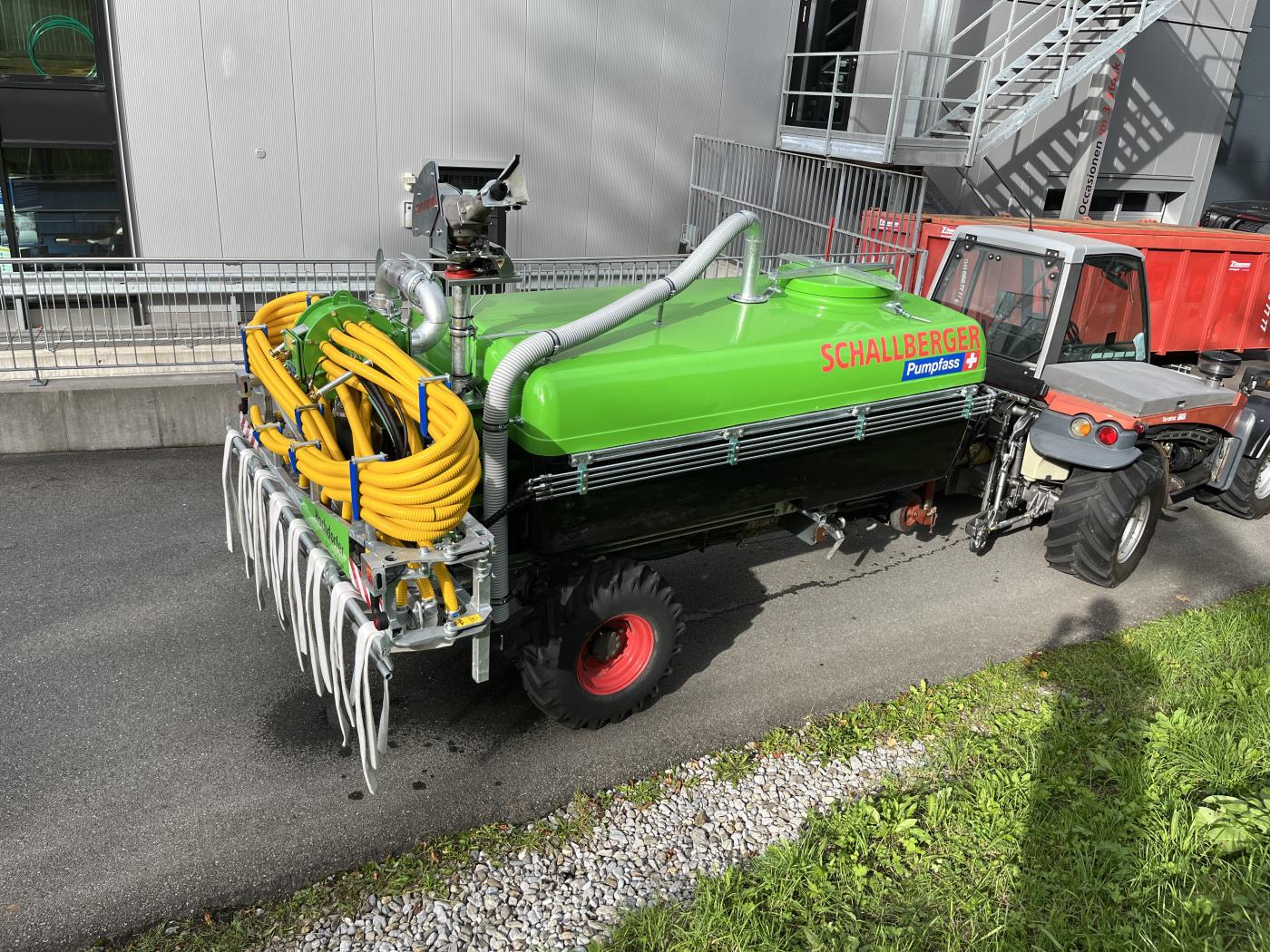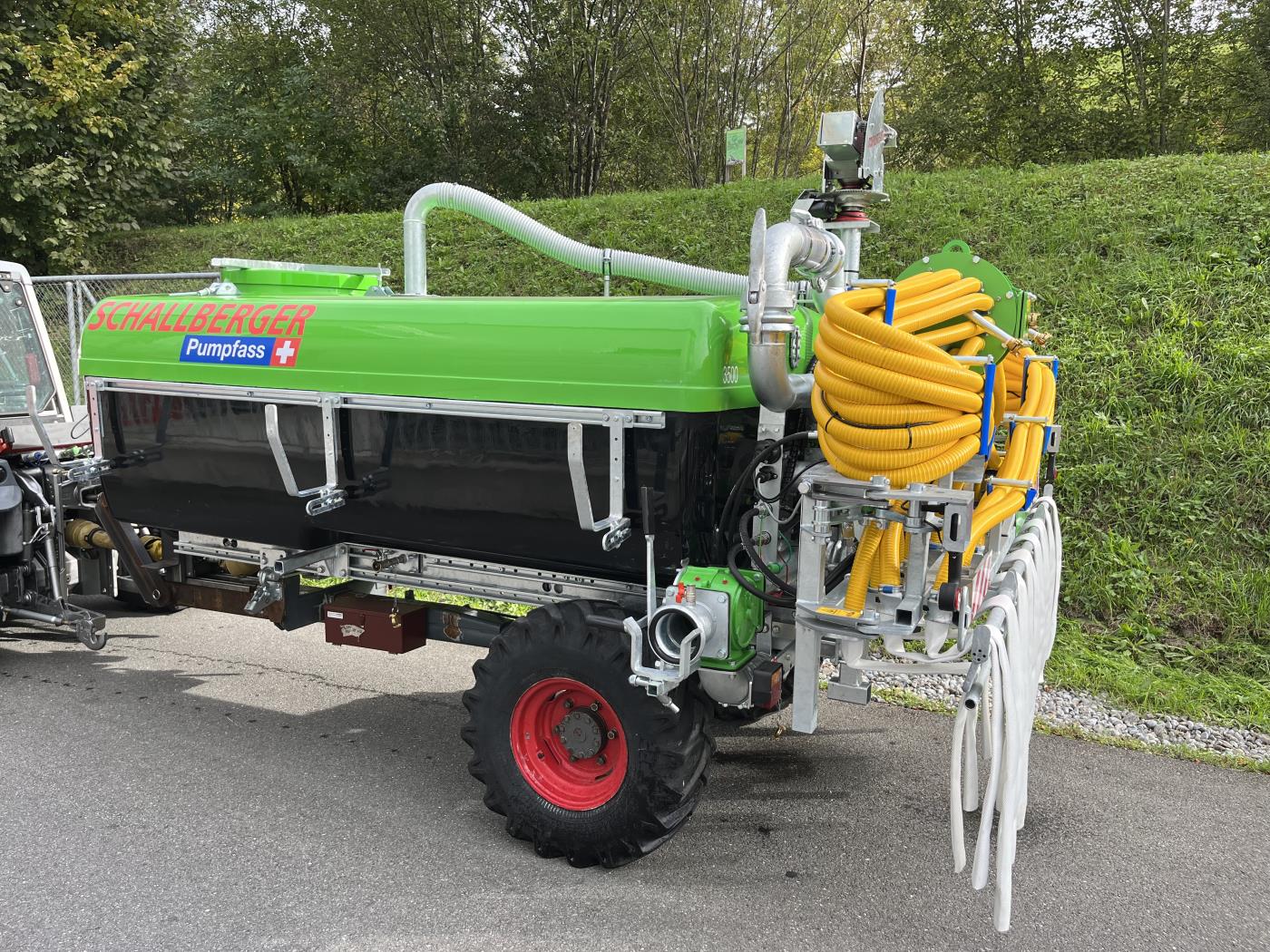 1 x Saugschlauch 3m; 1 x Saugrohr mit Steinschutz 3m; 1 x Flächenverteiler ; Schneckenpumpe AE1E1000 75m3/h 10 bar; Aufbau Aebi oder Lindner; Elektroverteiler; 3. Schieber hydraulisch; Schnellkuppler für Saugschlauch, Perrot NW 108; Chromstahlgravur Schieberbeschriftung; Bullauge; Abstellstützen; Schleppschlauchverteiler Modesto N Fass; Funksteuerung; Anfahrsicherung hydraulisch; Set Hubspindeln für SSV; Transporter seitig 2 x DW;